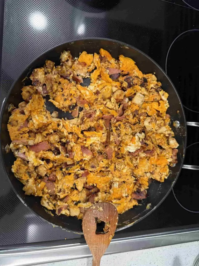 We’re going to start with a basic: eggs. If you hate eggs, again, move on to another blog or stay with us and adapt. These are pretty tasty because they pull in the flavors of the other proteins we use.