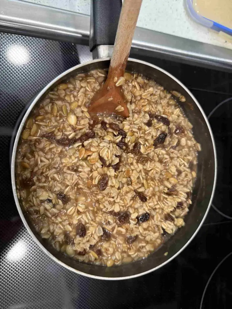 - Add raisins (or dried fruit of your choice) to the water with a little pure vanilla extract or vanilla beans scraped from the pod, some cinnamon and let it boil.